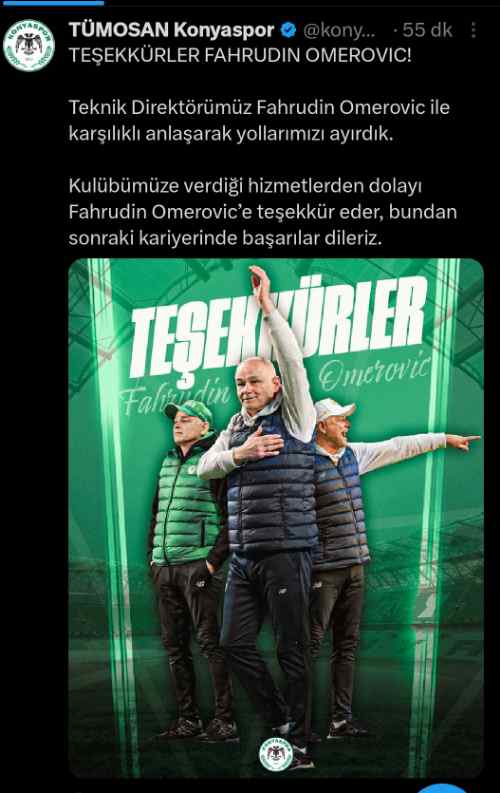 Trendyol Süper Lig ekiplerinden Tümosan Konyaspor teknik direktör Fahrudin Ömeroviç ile yollarını ayırdı