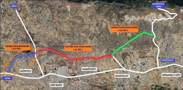 Ulaştırma ve Altyapı Bakanı Abdulkadir Uraloğlu, Kuzey Kıbrıs Türk Cumhuriyeti’nin Başkenti Lefkoşa’nın şehir içi ve transit trafiğini düzenleyecek olan 20 kilometre uzunluğundaki Lefkoşa Kuzey Çevre Yolu’nun temel atma töreninde yaptığı konuşmada yolun 11 kilometrelik kesimini 20 Temmuz 2021 tarihinde trafiğe açtıklarını anımsatarak, “Şimdi de projemizin 4,6 kilometrelik ikinci kesiminin temelini atıyoruz. Platform genişliği 23 metre olacak yol bünyesinde 2 adet modern dönel kavşağın yanı sıra yolu Girne – Lefkoşa Yolu’na bağlayacak 48 metre açıklıklı Girne Köprülü Kavşağı’nı da inşa edeceğiz. Kuzey Çevre Yolu ile; transit trafiği şehir dışına alarak, Lefkoşa’nın şehir içi ve çevre yerleşkelerle ulaşımını rahatlatıyoruz.” diye konuştu.