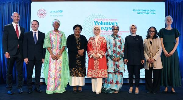Cumhurbaşkanı Recep Tayyip Erdoğan’ın eşi Emine Erdoğan’ın himayelerinde, Aile ve Sosyal Hizmetler Bakanlığı ile UNICEF iş birliğinde gerçekleştirilen, “Bir Denizyıldızı Hikayesi: Gönül Elçilerine Küresel Davet” başlıklı üst düzeyli yan etkinlik New York’taki UNICEF Genel Merkezi’nde Emine Erdoğan Hanımefendi ve Aile ve Sosyal Hizmetler Bakanımız Mahinur Özdemir Göktaş’ın katılımıyla düzenlendi.