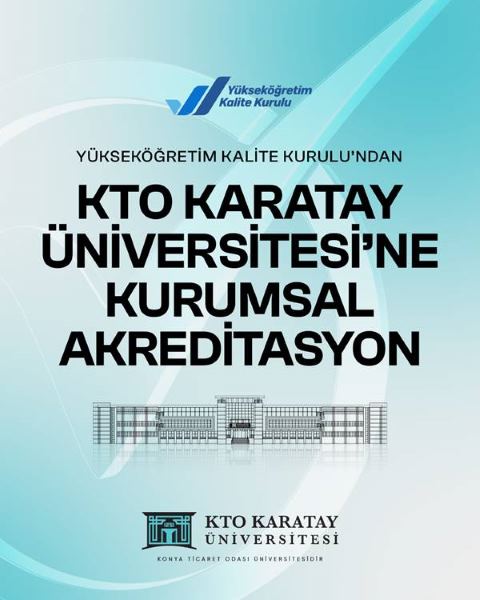 Konya Ticaret Odası (KTO) Karatay Üniversitesi, eğitimde mükemmeliyet anlayışını sürdürülebilir kılma hedefi doğrultusunda önemli bir başarıya imza attı. KTO Karatay Üniversitesi, Yükseköğretim Kalite Kurulu (YÖKAK) tarafından verilen kurumsal akreditasyonu alarak eğitim-öğretim, araştırma-geliştirme ve yönetim süreçlerindeki kalitesini tescilledi.